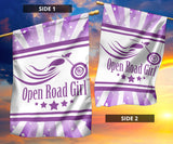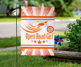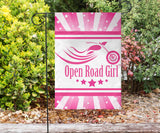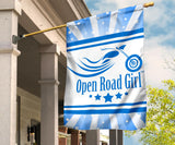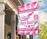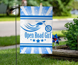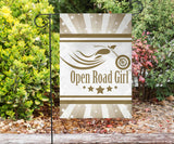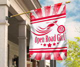 Open Road Girl with Stripes Garden or House FLAG ONLY, 7 COLORS – Open Road Girl Motorcycle Apparel & Accessories For Women
