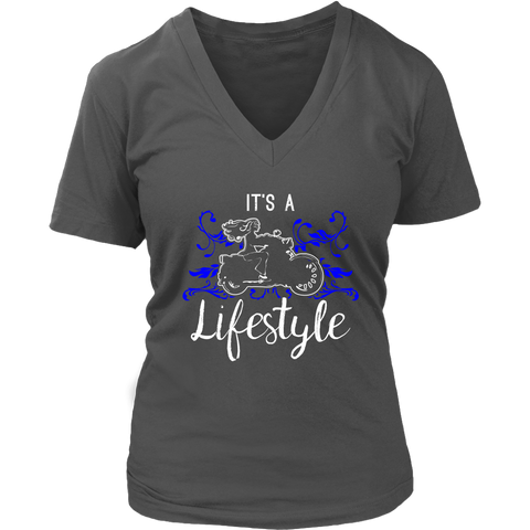 BLUE It’s a Lifestyle Women’s V-Neck T-Shirt-Short Sleeve – Open Road Girl Motorcycle Apparel & Accessories For Women