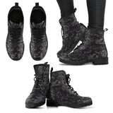 - Features eco-friendly leather with a double-sided print and rounded toe construction.