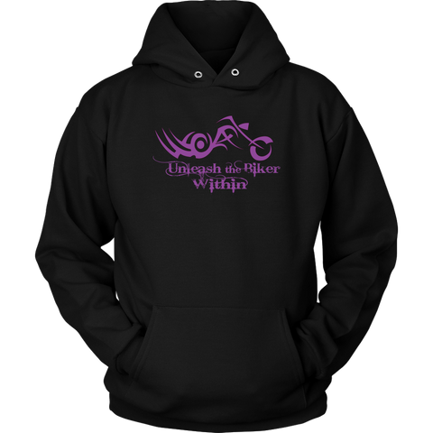 PURPLE Unleash The Biker Within Sweatshirt UNISEX Hoodie – Open Road Girl Motorcycle Apparel & Accessories For Women